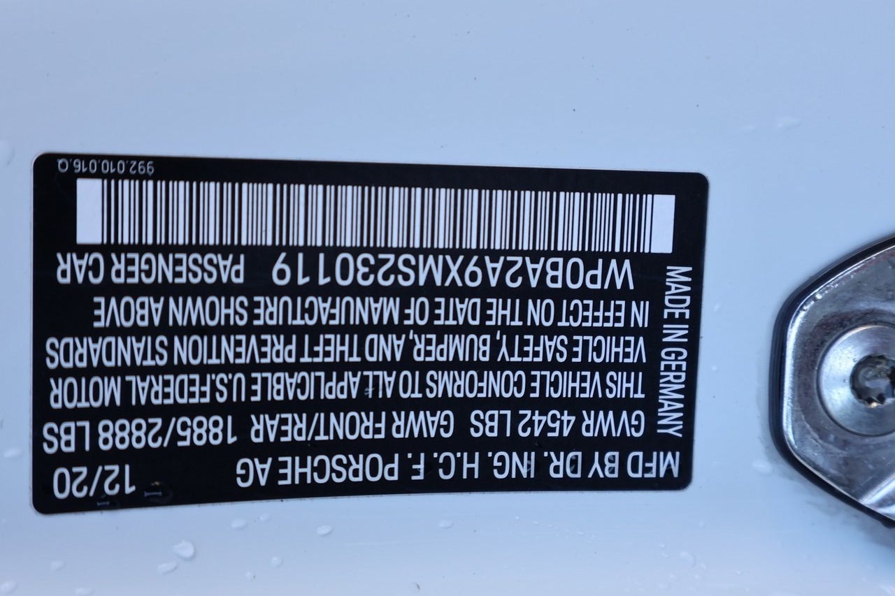 - Radio: Porsche Communication Management (PCM) -inc: Porsche Connect Plus (online navigation, FM radio, wireless Apple CarPlay, SiriusXM, 4G/LTE telephone module and wireless internet access), Porsche Car Connect (car finder, remote vehicle status, remote services and Porsche Vehicle Tracking System (PVTS)), sound package plus, analog sound system, 8 loudspeakers, 150-watt total output w/integral amplifier, digital signal processing and voice control, Subscription required for Porsche Car Connect
